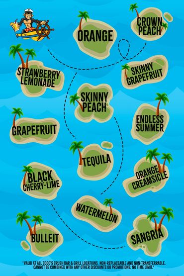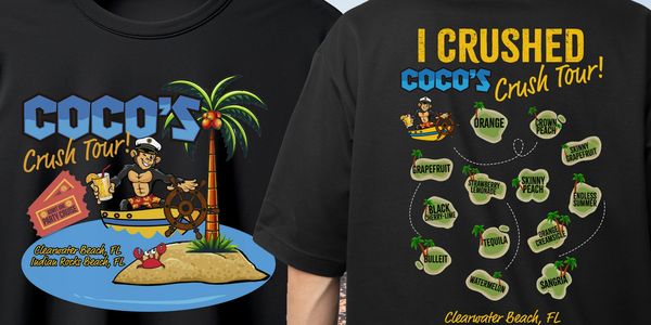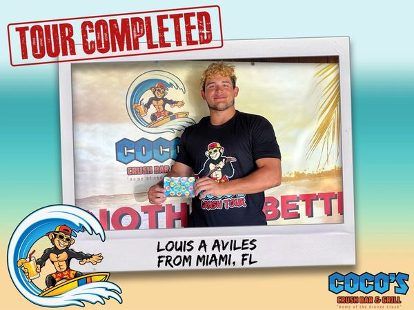 Receive your Crush Tour Postcard. Ask to go VIP and get your choice of Coco's 22oz Tumbler or Hand Carved Coconut cups to receive a discount on refills throughout the tour.